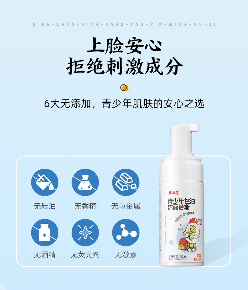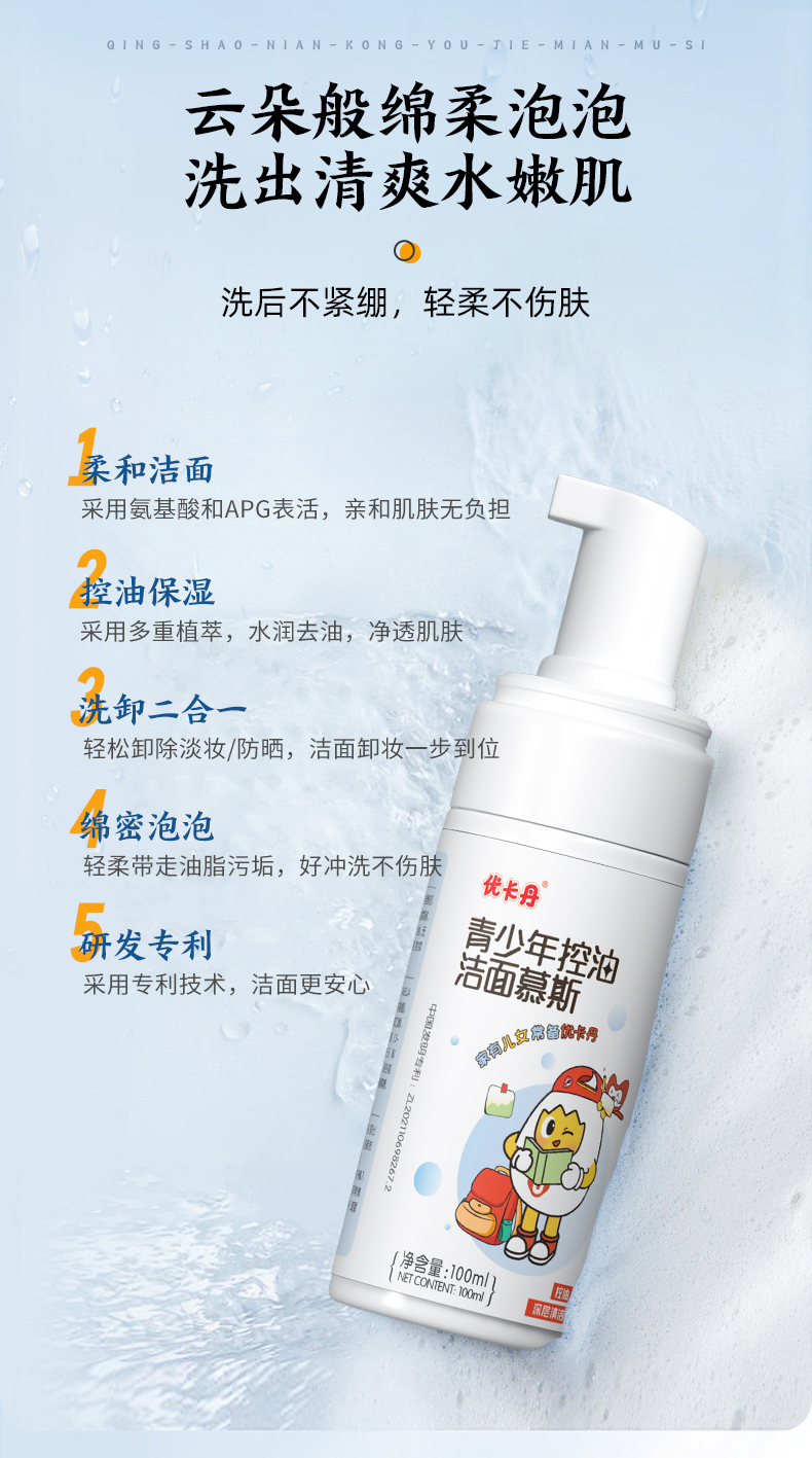 產品名稱:優卡丹青少年控油潔面慕斯