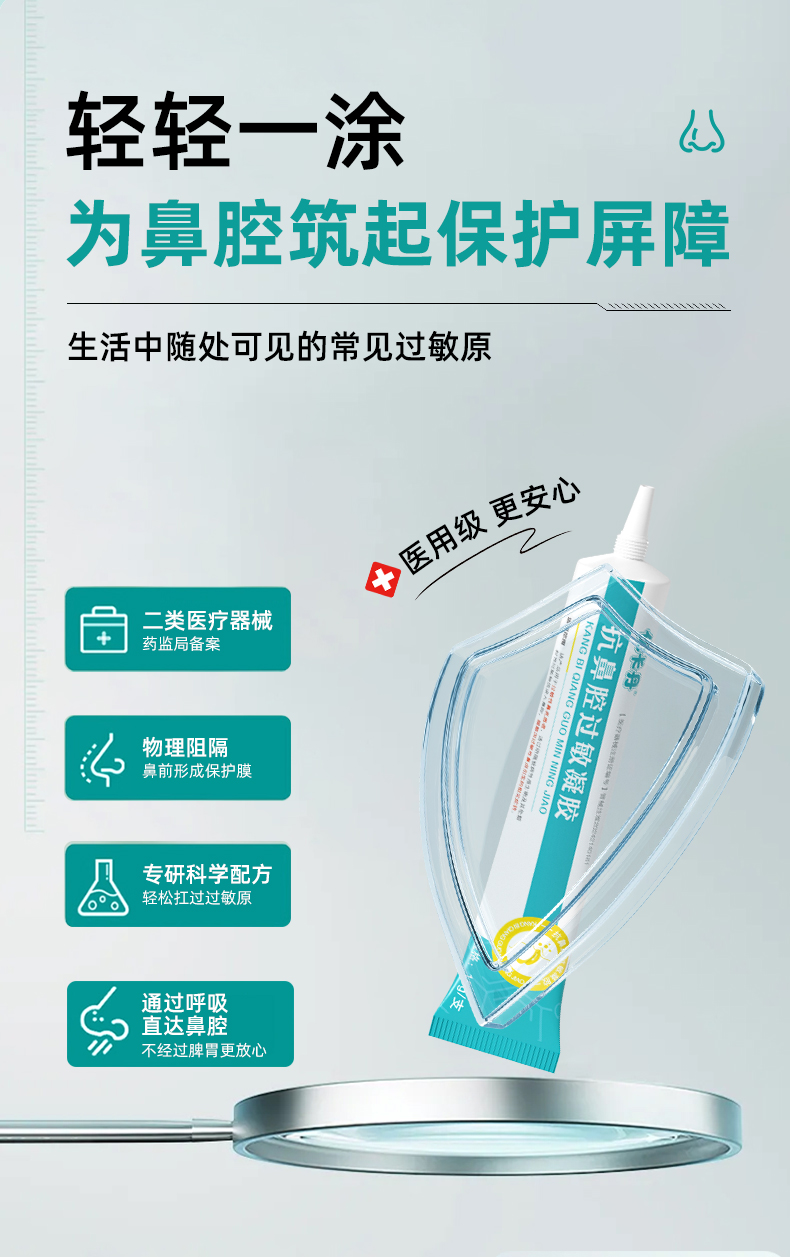 【適用范圍】該產品用于過敏性鼻炎患者,通過阻隔致病性微生物及其他顆粒性過敏物質進入鼻腔,緩解因過敏性鼻炎引發的相關癥狀。