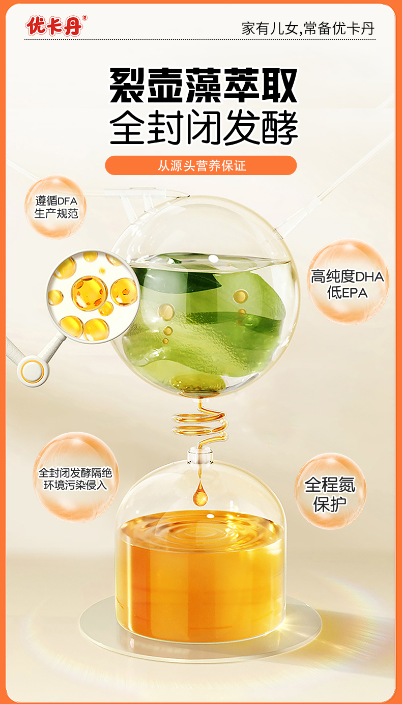 給孩子吃的東西,安全永遠(yuǎn)是第一位。優(yōu)卡丹 DHA 藻油 + ARA 凝膠糖果選用海裂壺藻作為 DHA 來源,這種藻種不依賴海洋環(huán)境,從源頭避免了重金屬、污染物等風(fēng)險(xiǎn),純度更高,也更安全。