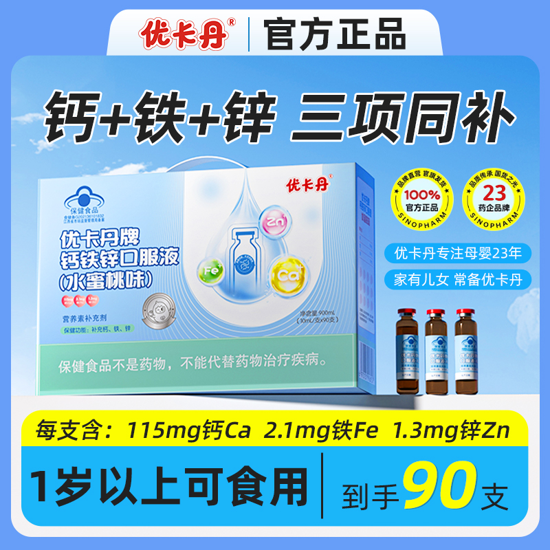 4. 優卡丹牌鈣鐵鋅口服液90支禮盒裝上線│鈣鐵鋅三效同補,自用送禮都有“面”!