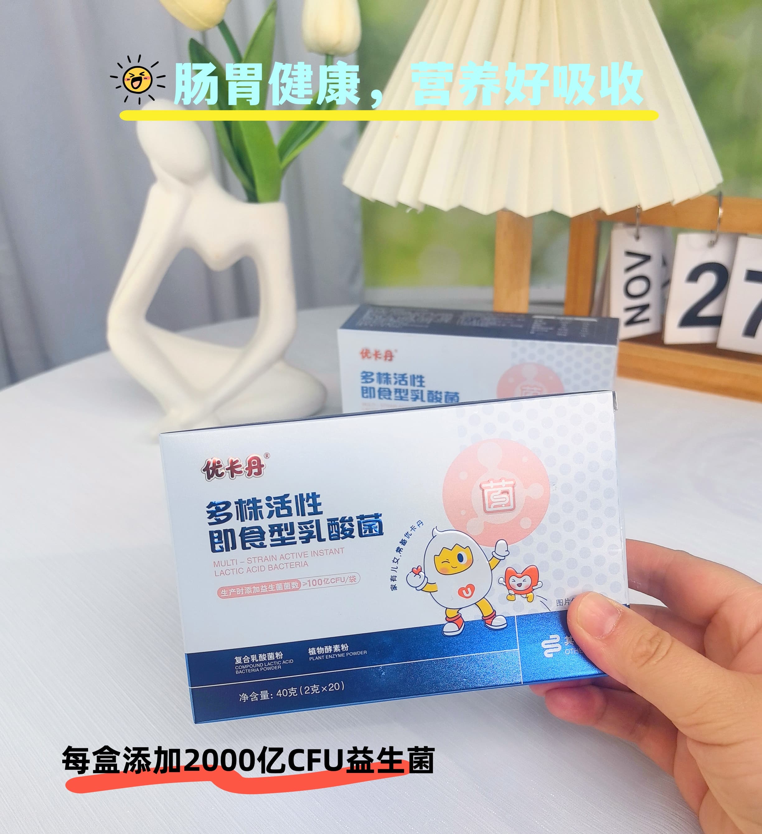 以優卡丹多株活性即食型乳酸菌為例,核心菌株均源自《可用于嬰幼兒食品的菌種名單》,特別配伍乳雙歧桿菌與鼠李糖乳桿菌LGG。