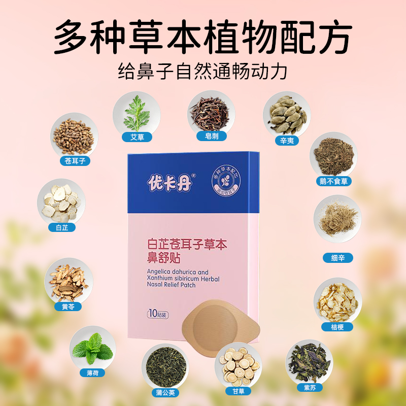 優(yōu)卡丹深入挖掘中醫(yī)經(jīng)典,精選蒼耳子、白芷、辛夷等多種天然草本,通過現(xiàn)代工藝科學(xué)萃取、合理配比,將精華凝聚于一方貼布之中。