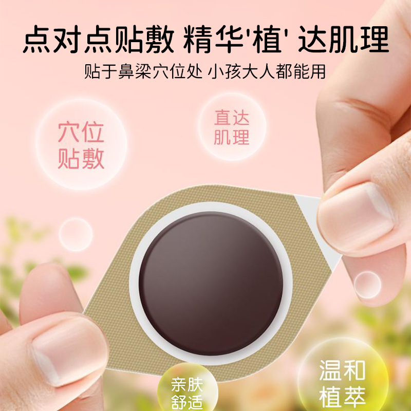 2.  貼敷:取出鼻舒貼,將中心對準(zhǔn)穴位,輕輕貼牢,建議敷貼4-6小時。